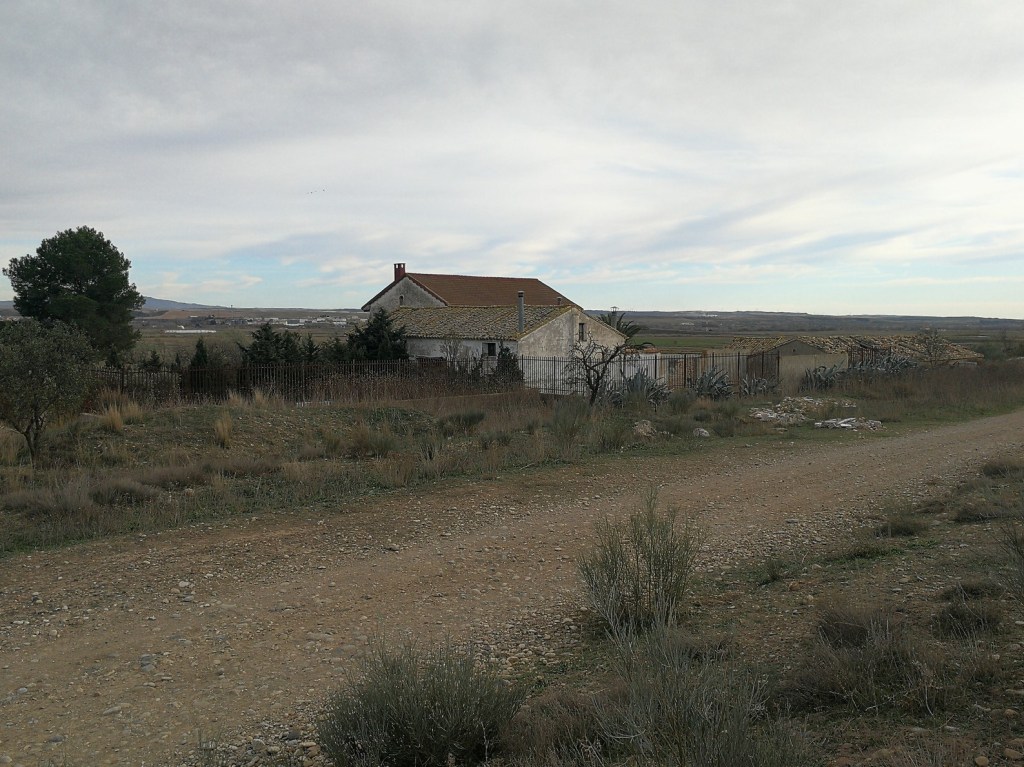 Giramos a la izquierda por la carretera y volvemos a entrar a Zuera por la rotonda sur, para volver a callejear hasta el fin de la ruta, siguiendo las marcas rojas y blancas del GR-234.