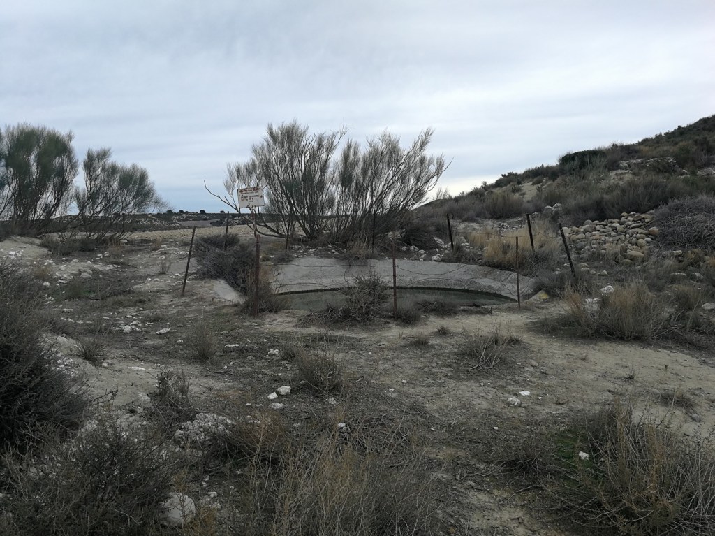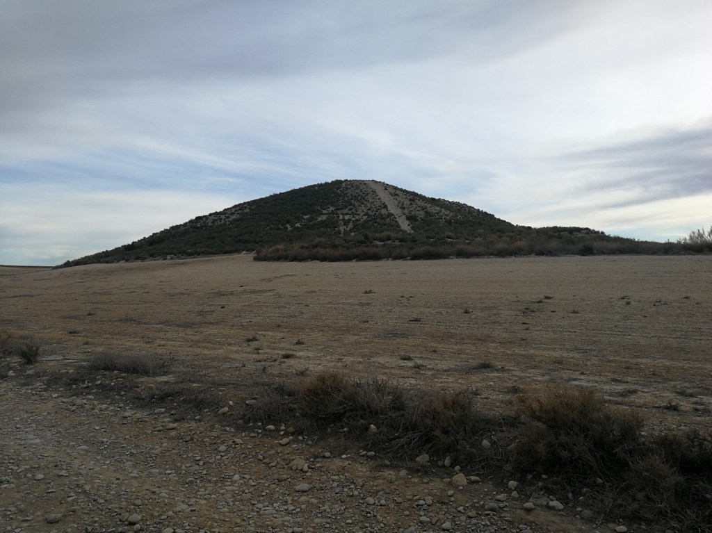 Desde aquí bajamos hacia la hoya de Puitroncón y dejamos a nuestra izquierda el cerro que le da el nombre. Nos adentramos en la hoya, que es un terreno de yeso y salados. Es el lugar más seco del Monte de Zuera. Seguimos hasta un cruce de caminos en el centro de la hoya, donde nos iremos hacia nuestra derecha, en dirección al norte de la hoya.