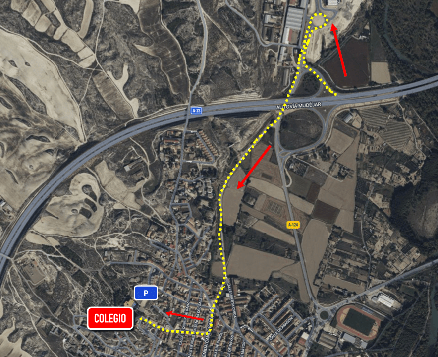Desde la autovía A-23 tomar la salida 316 (Zuera – Ejea de los Caballeros), para acceder a la Carretera A-124 hasta la rotonda de acceso al Polígono del Campillo, donde volveremos sobre nuestros pasos en dirección a Zuera, para acceder al casco urbano por la Calle Huerta Chica, Calle Libertad, Avda. Candevanía, Calle San Licer y Calle Antonio Machado hasta el aparcamiento del colegio.
