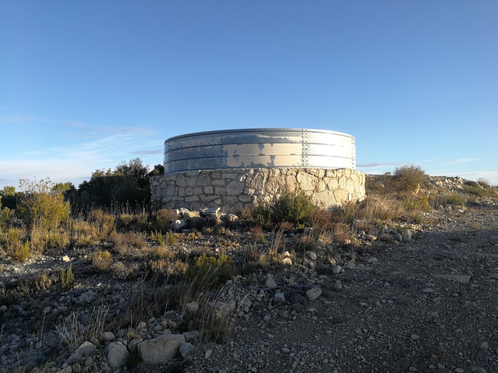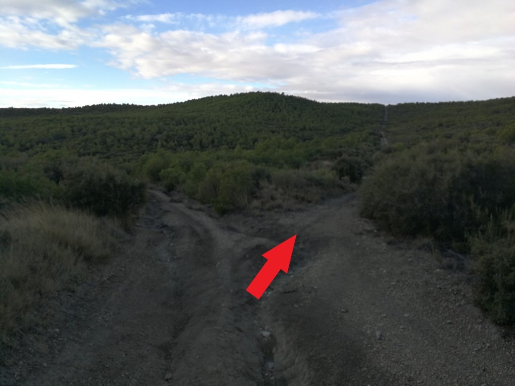Seguimos por el camino de la Loma Palomera en dirección oeste, hasta llegar a un depósito de agua, donde giraremos a nuestra derecha por un sendero que desciende por la falda sur de la loma. Tras 1,7Km de sendero, conectamos con la pìsta que baja de La Palomera hacia Cuatro Caminos.