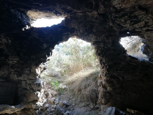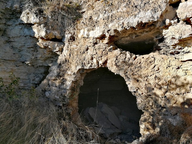 Tras unos metros por el camino, nos desviamos a nuestra izquierda por la orilla de un campo para ir a buscar en la falda de un pequeño morro la cueva de La Covatilla.