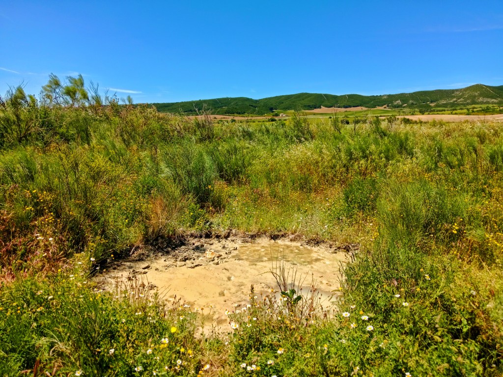Bajamos en dirección suroeste de nuevo hacia la Cuenca. Tras unos metros y detrás de un montículo de tierra a la izquierda del camino, encontramos la Balsa de Mosén Lorenzo, donde encontraremos agua según la pluviometría de la época.