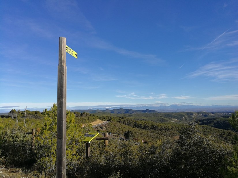 Retrocedemos sobre nuestros pasos hasta la carretera del acuartelamiento y la tomamos a nuestra derecha durante 600 metros hasta llegar al Mirador de la Mula, desde donde tendremos buenas vistas de la Val de Navarro, del Castellar y del Valle del Ebro en días despejados.