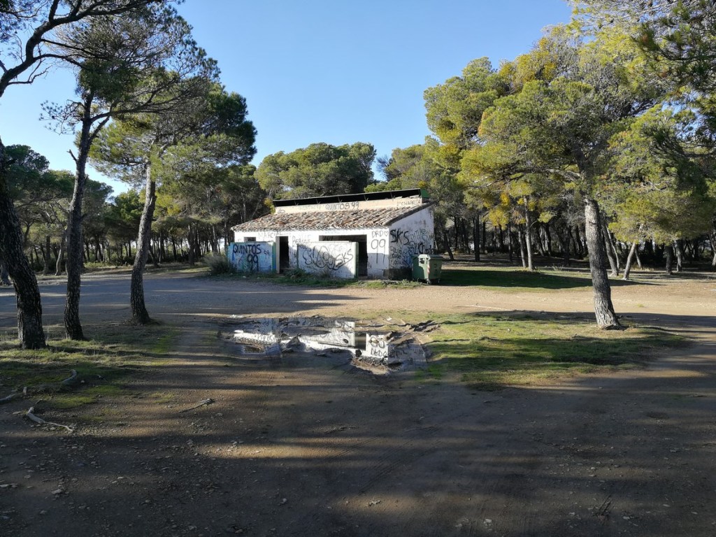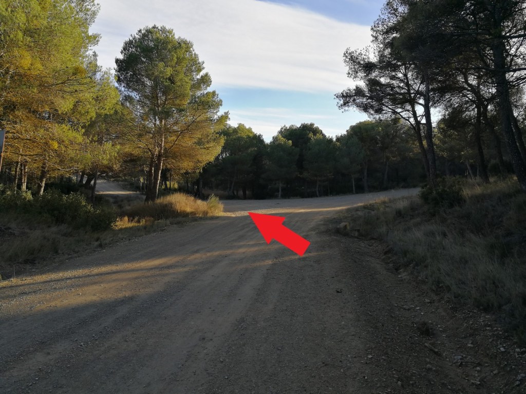 Desde la zona de asadores tomamos un pequeño sendero que comienza entre el pinar, en dirección noroeste. Bordeamos un campo de cultivo, dejándolo a nuestra derecha. Tras 900m por este sendero, conectamos con un pequeño camino, donde giramos a nuestra izquierda. Tras 1,3 Km de ruta cogemos un sendero a nuestra derecha , para ir ascendiendo de manera suave por una zona de pinar y monte bajo.