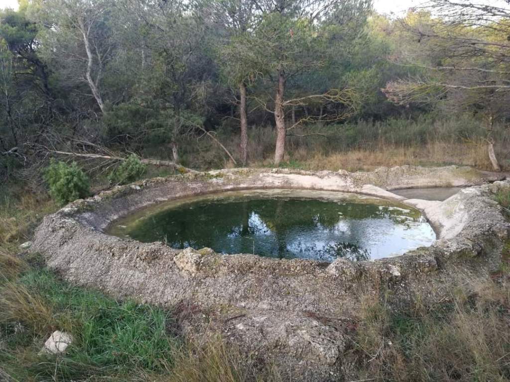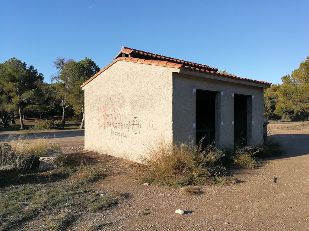 Desde los asadores tomamos el camino en dirección Sur. A los pocos metros cogemos una bifurcación de caminos a nuestra izquierda. Tras 300 metros de ruta cogemos una bifurcación de caminos a nuestra derecha, y seguimos por un pequeño camino que nos llevará entre pinos y algún campo.