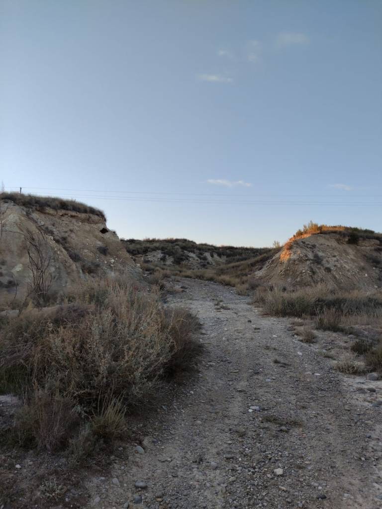 Tomamos el camino que entra hacia la Val Ferrera e inmediatamente giramos a la izquierda, bordeando la Veneciana, por el camino que nos llevará por la zona de lomas que hay sobre el Polígono del Campillo.