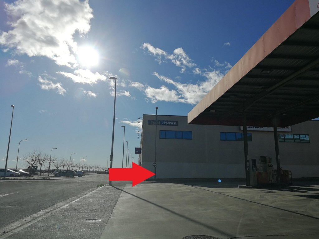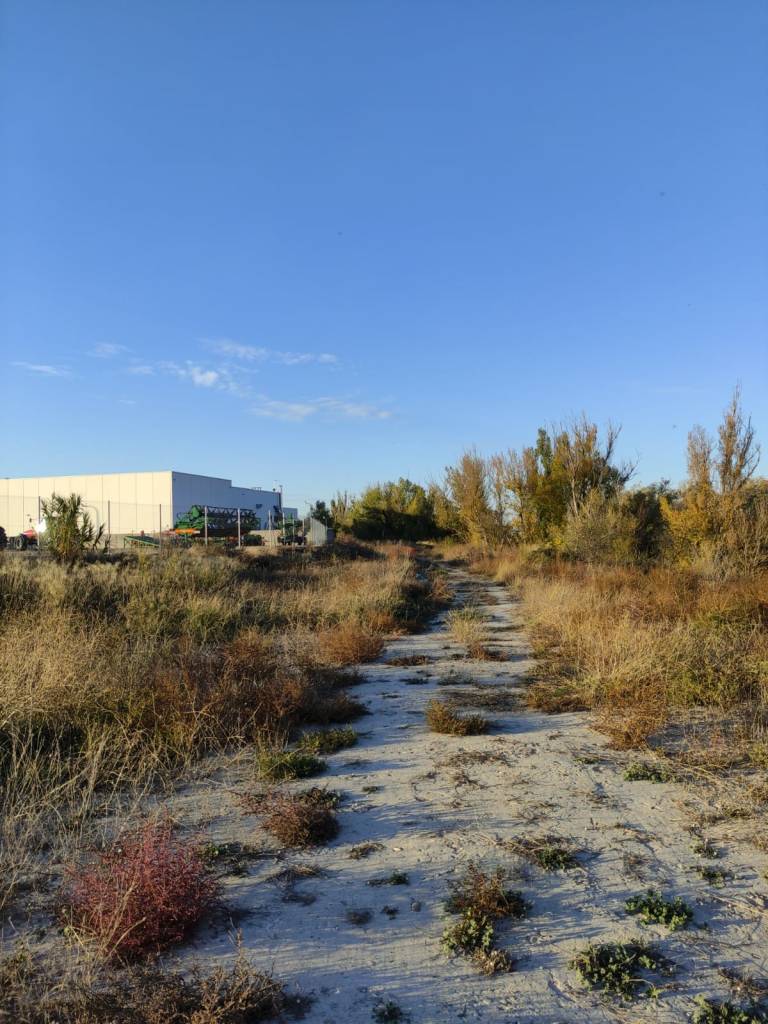 Tras cruzar el puente tomamos un sendero a nuestra derecha que cruza un soto y desemboca en la parte trasera de una campa de maquinaria agrícola. Salimos a la Cooperativa San Licer y la bordeamos por la calle Francia, hasta llegar a la vía de servicio del Polígono del Campillo.