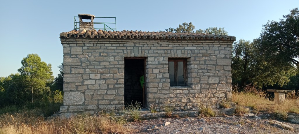 A los pocos metros dejamos a nuestra derecha el desvío a la Fuente del Camino y Val de Aísa. Seguimos por el camino hasta que encontramos a nuestra izquierda el desvío a los Pilaretes. Tras poco más de 500 metros de subida llegamos al Refugio de los Pilaretes (684m). Esta caseta fue recuperada hace años por la brigada forestal que vigilaba el monte. Desde aquí tendremos excepcionales vistas de todo el Monte de Zuera.