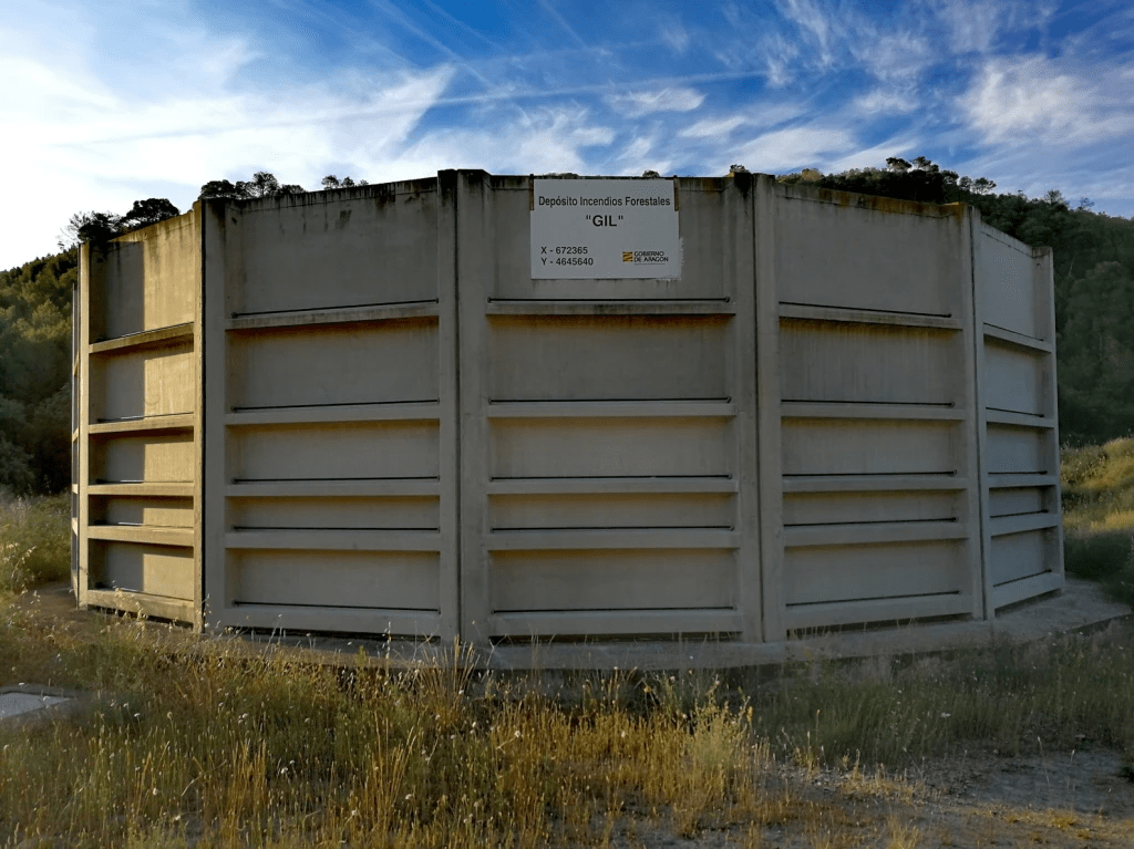 Seguimos el descenso y dejamos a nuestra izquierda el desvío a la Fuente del Carasol, y seguidamente a nuestra derecha dejamos el depósito de Gil, que es un depósito de agua para extinción de incendios. Este depósito recoge el agua canalizada del Pozo Cantarero y de la Fuente del Carasol.