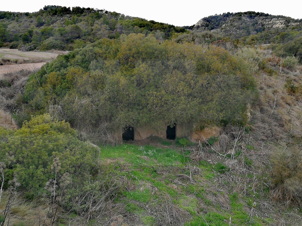 Seguimos por el camino y tras 500m desde la caseta, tomamos un pequeño camino a nuestra derecha para dirigirnos a una caseta que se ve en el campo de nuestra derecha. Justo detrás de la caseta encontramos la Cueva del Planchador. La cueva está en buen estado y si entramos a ella podremos ver las tres pequeñas estancias que disponen el interior de la cueva.