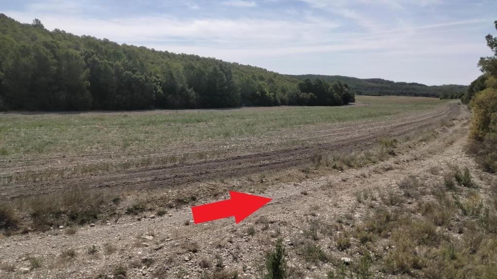 Giramos a nuestra derecha y bordeamos un campo de cereal por su linde y tras 400 metros tomamos un pequeño sendero a nuestra derecha, que tras salvar una pequeña loma, nos lleva hasta la Val de Tierra.