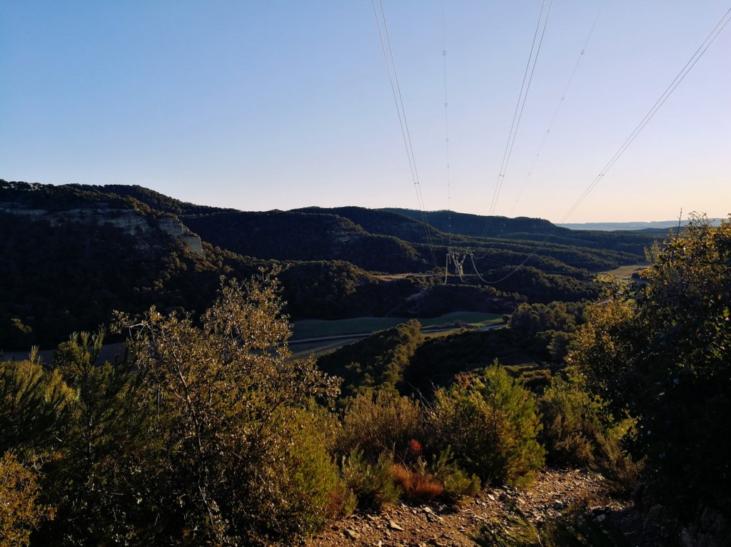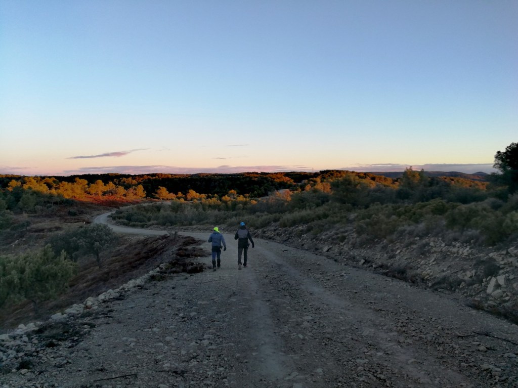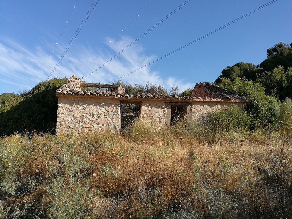Avanzamos unos metros y encontramos una senda que da acceso a un pequeño varillo por el que iremos ascendiendo en dirección sur a través de un pequeño sendero. Tras un par de revueltas, aumenta la pendiente y la senda pasa a ir por la cresta de una loma que nos lleva directamente al refugio de los Pilaretes (684m).