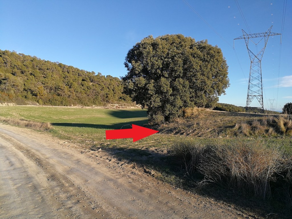 Unos metros más adelante, antes de llegar al desvío hacia la Val de Cherre, encontramos una carrasca, por donde giramos bordeando un campo.