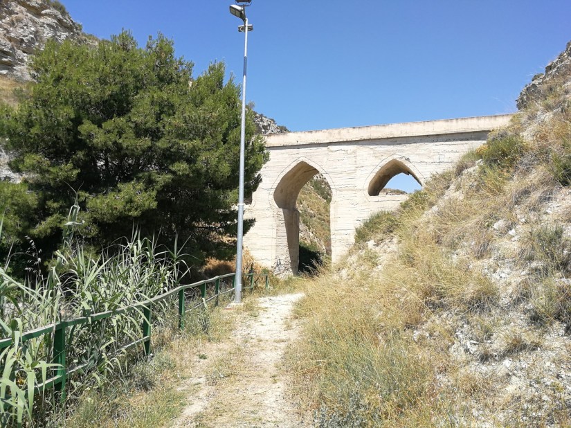Al llegar a la altura del arco, nos desviamos a la izquierda, cruzamos por encima de la acequia Candevanía hasta el arco, que lo pasaremos por debajo, para subir por la senda a nuestra derecha. Cruzamos el arco por arriba y tomamos una pequeña senda que tenemos justo enfrente nuestro para llegar hasta la zona de casas adosadas de la Loma Rajada. En este punto hemos de tener cuidado por los posibles resbalones.