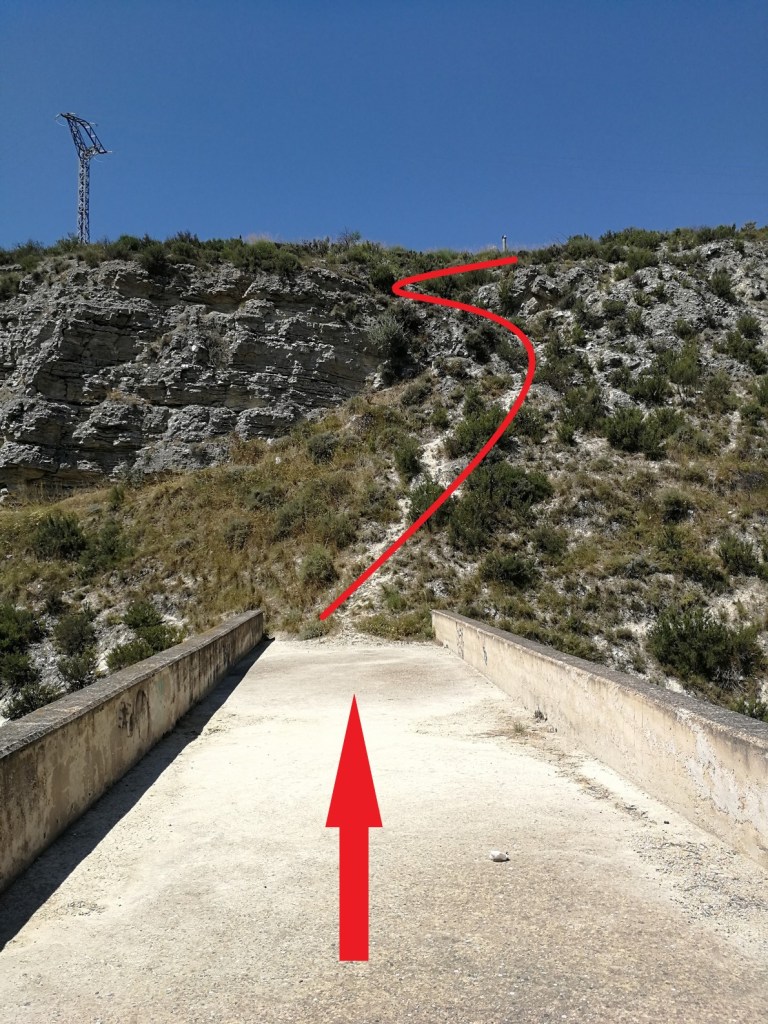 ⚠️Si no nos vemos capacitados para subir por esta senda, la opción sería no bajar por la Huerta Chica hasta el Arco de la Mora, y subir por la Calle Dr. Civera, Val del Rey y Val Alta, hasta conectar con la ruta original justo antes del puente sobre la autovía A-23.