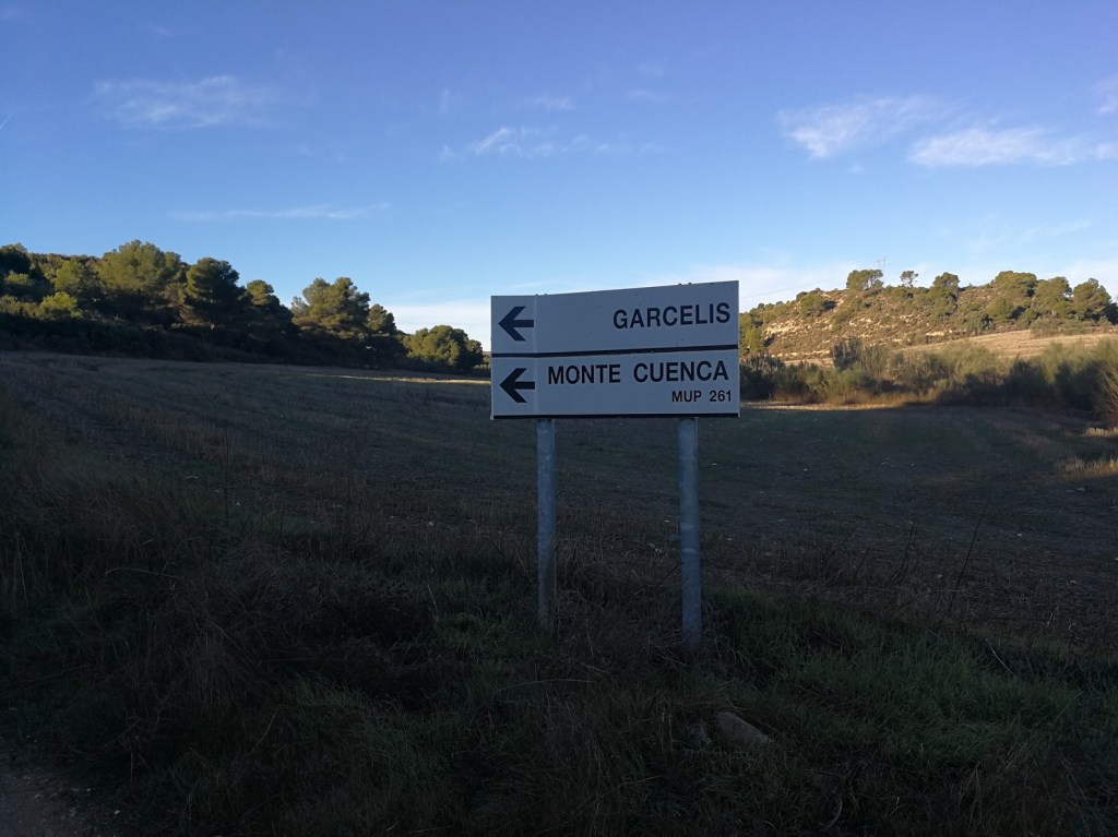 Justo detrás de la fábrica de La Veneciana, cogemos el segundo camino a nuestra izquierda, en dirección al Monte Alto. Un cartel nos indicia «Monte Alto – Gazaperuela – Pilarotes». El camino asciende dejando la Val Ferrera a nuestra izquierda y el Acampo de Doña Antonia (Acampo Franco) a nuestra derecha.