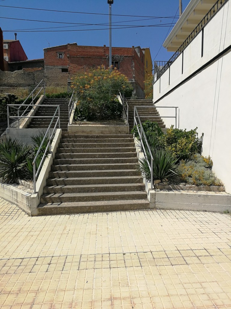 Volvemos a salir al camino para descender por la «triple cuesta» hasta el Camino de Val de la Horca, que tomaremos a nuestra izquierda. Nos dirigimos hacia la Calle Huesca y giramos a nuestra derecha para bajar las escaleras y cruzar al otro lado de la carretera, junto al cementerio.