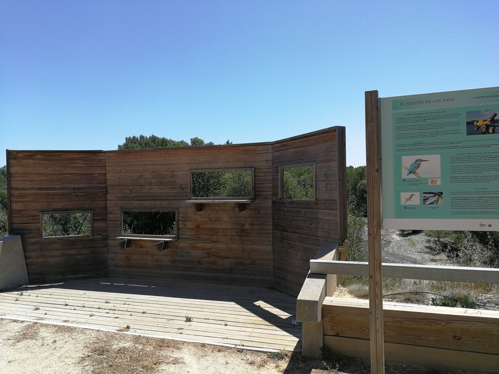Antes de llegar al fin de ruta, tenemos a nuestra derecha un mirador con vistas al soto del río, donde hay una construcción bastante singular. Unos metros más adelante tenemos un observatorio de aves de ribera. Desde aquí solo nos quedan unos pocos metros hasta el fin de la ruta en la Plaza Manuel Giménez Abad.
